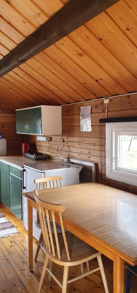 Våra enklare campingstugor är utrustade med kokplatta, köksutrustning och kylskåp.
